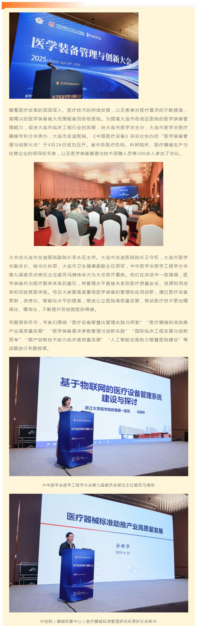 装备创新驱动诊疗服务能级跃升——大连市友谊医院成功举办“医学装备管理与创新大会”