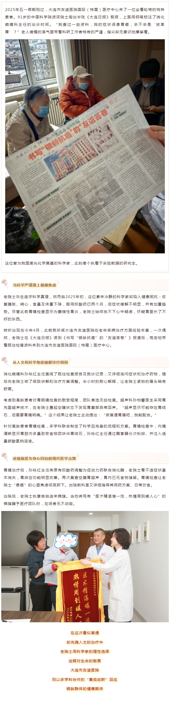 【友谊临床】院士送锦旗,为身心同治的现代医学点赞!
