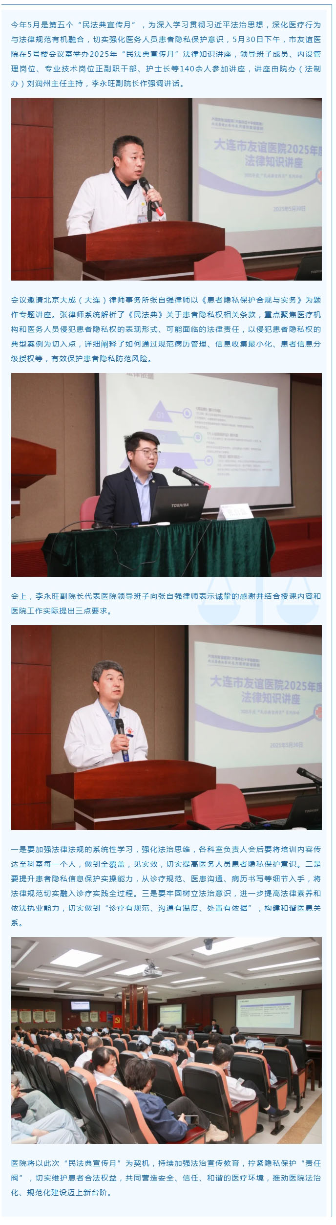 【友谊之声】“典”亮生活 ,“医”路同行——我院举办2025年“民法典宣传月”法律知识讲座