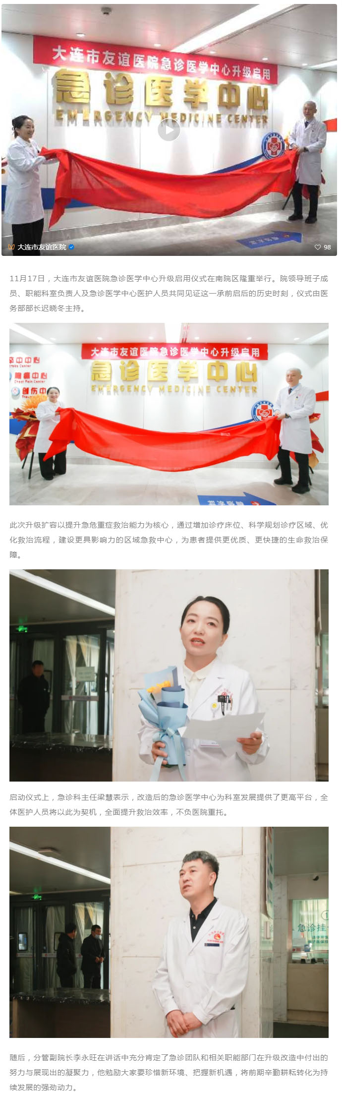 导读:扩面积,增床位!大连市友谊医院急诊医学中心旧貌换新颜,急救能力再提升!