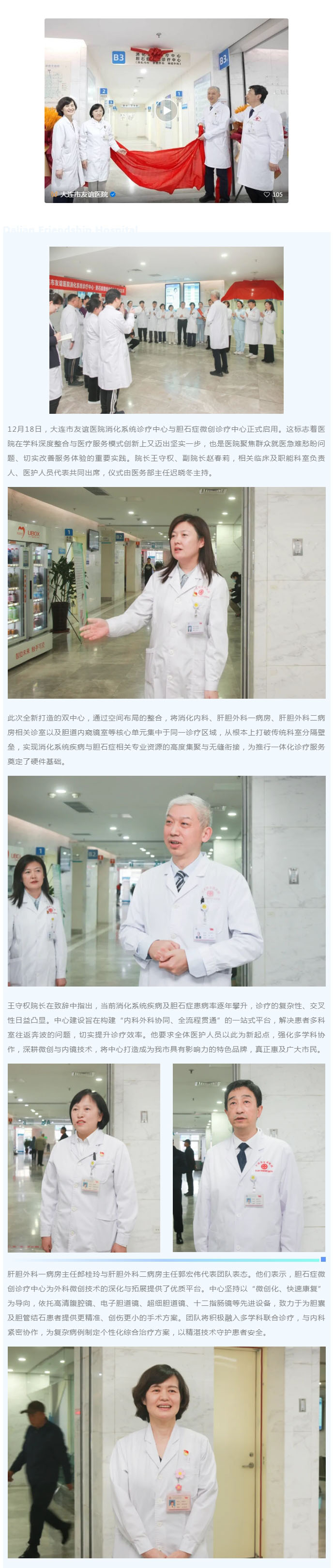 导读:市友谊医院消化系统诊疗中心、胆石症微创诊疗中心正式启用