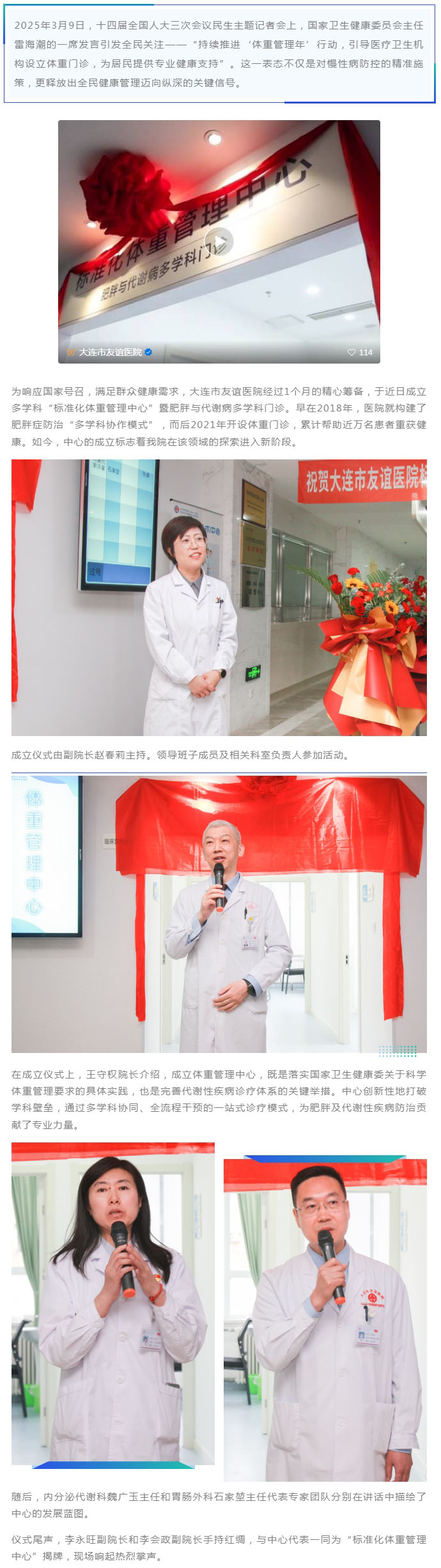 体重管理年,行动再升级!市友谊医院体重管理中心成立啦!