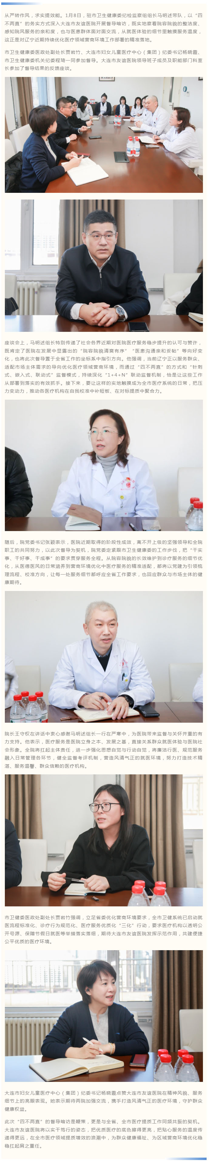 紧扣全省健康系统优化营商环境工作部署,市纪委监委驻市卫生健康委纪检监察组督导暗访大连市友谊医院
